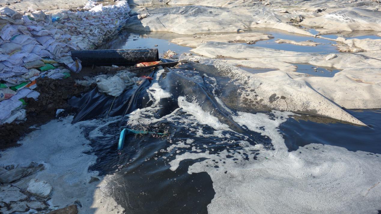 哈爾濱市香坊區向陽垃圾填埋場大量滲出濾液。(生態環境部供圖)