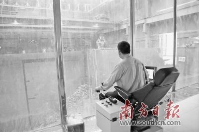抓斗將發酵的垃圾抓起,準備送入焚燒爐。
