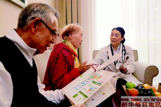 北京恭和苑內的醫生為老人做定期檢查?! D片由受訪者提供