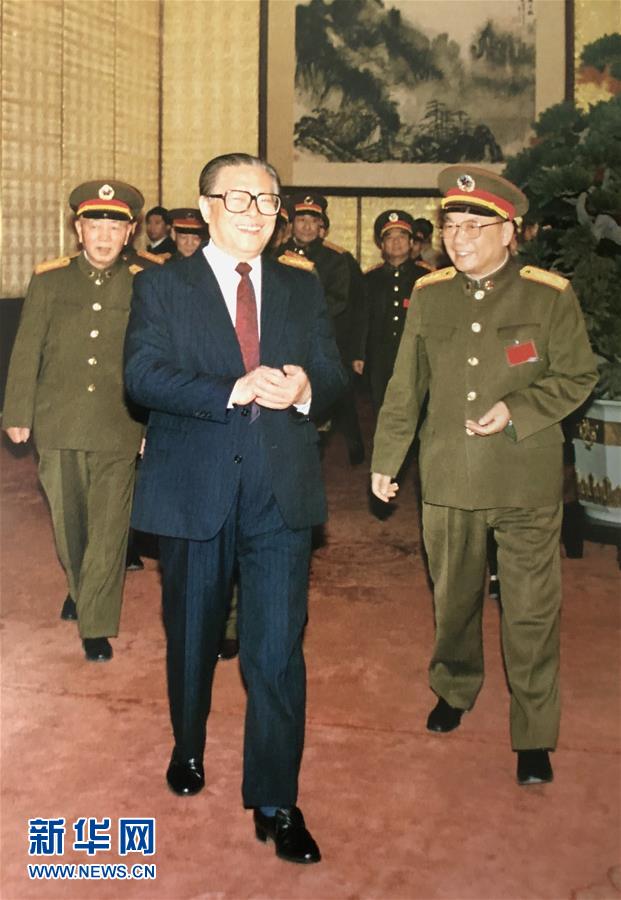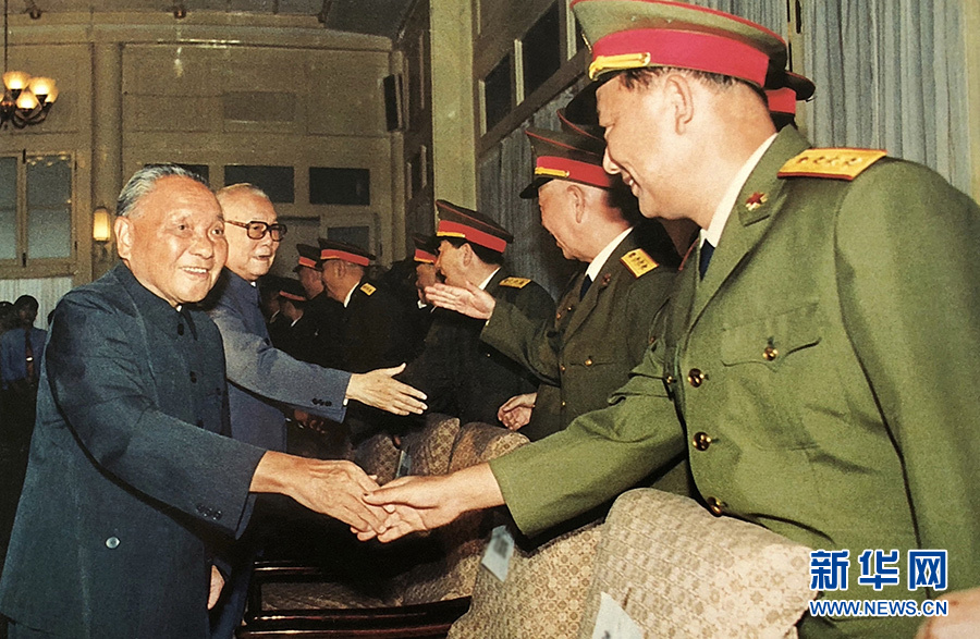 1988年9月,鄧小平同志與被授予上將軍銜的趙南起同志握手。新華社發