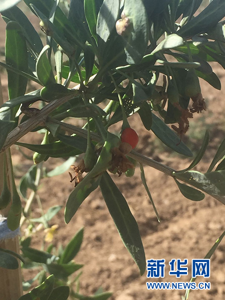 元山子鄉枸杞種植基地內的枸杞有的已經結了果。 新華網 雷東瑞 攝