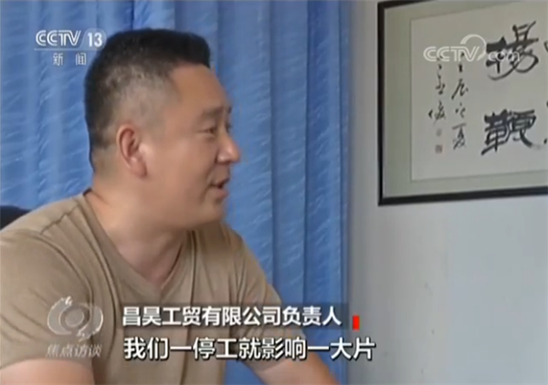 美力晶玻璃有限公司負責人表示:“沒有怎么解決,讓我們交罰款,我們沒有辦法交,只能政府協調處理。我們沒有辦法停工,我們是接單生產企業,我們停工的話,怎么生存?”
