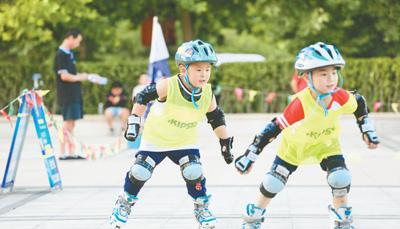 北京市通州區運河文化廣場,小朋友在滑輪滑。王丹楓攝