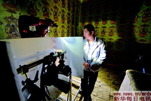 ▲工作人員對莫高窟第152窟進行數字化采集?!z影:本報記者陳斌
