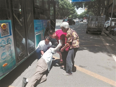 當天上午11時50分,廣州增城102路公交司機沈觀照駕駛公交車??吭龀菂^華峰社區公交站時,車廂中突然有乘客大喊:“快幫幫忙,有個阿伯摔倒了!” 沈師傅聽到喊聲馬上靠邊停車,只見一名約80歲阿伯摔倒在公交站站臺上,一名年紀相仿的阿婆是他的老伴,正試圖扶起他,但有些力不從心。沈師傅馬上和另外一名在場的司機一同扶起摔倒阿伯,“阿伯意識是清晰的,但損傷還是比較嚴重,臉皮破皮流血?!鄙驇煾嫡f,看阿伯的表情很痛苦,隨即一邊致電120尋求幫助,一邊細心攙扶著阿伯到旁邊的公交站凳休息。據悉,暈倒的阿伯和老伴準備乘車去石灘鎮找女兒,準備上公交車時不小心摔倒了。(全媒體記者林亦旻 通訊員姚飛燕攝影報道)