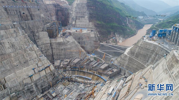 這是白鶴灘水電站建設工地(7月11日無人機拍攝)。 新華社記者 胡超 攝