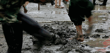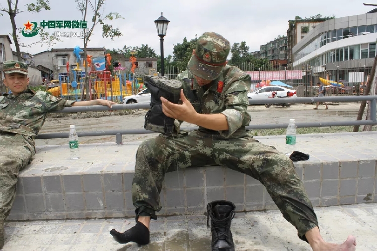 倒一下鞋子里的水,繼續戰斗。劉學功 攝