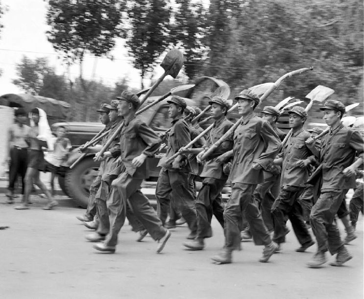 震后,大批人民解放軍日夜兼程奔赴災區,搶救人民生命財產。(1976年8月1日發)新華社記者 武清月 攝