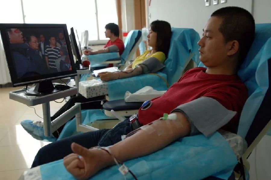 四川汶川地震發生后,唐山市民紛紛到血站和街頭流動獻血車進行獻血,以表達對災區人民的支持。(2008年5月14日攝)新華社記者 鞏志宏 攝