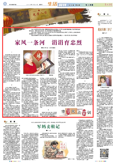 眼瞅著又快到建軍節了,昨個兒,我叫來大兒子敬朋,指著門楣上懸掛的“光榮之家”牌匾,對他說:“兒啊,把匾取下來,擦干凈,8月1日那天早上咱再掛上去,要讓早上的太陽,首先照亮它。因為——它就是咱家代代相傳、鮮血凝成的家風??!”(楊知雪/口述 謝學楓/整理)