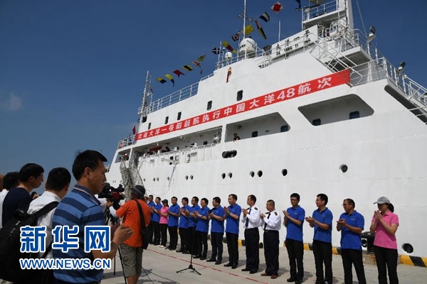 7月31日,在位于山東省青島市的國家海洋局北海分局科考基地碼頭,“大洋一號”科考船準備起航。新華社記者 李紫恒 攝