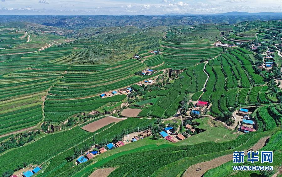 寧夏固原市隆德縣觀莊鄉前莊村(7月17日無人機拍攝)。? 新華社記者 王鵬 攝