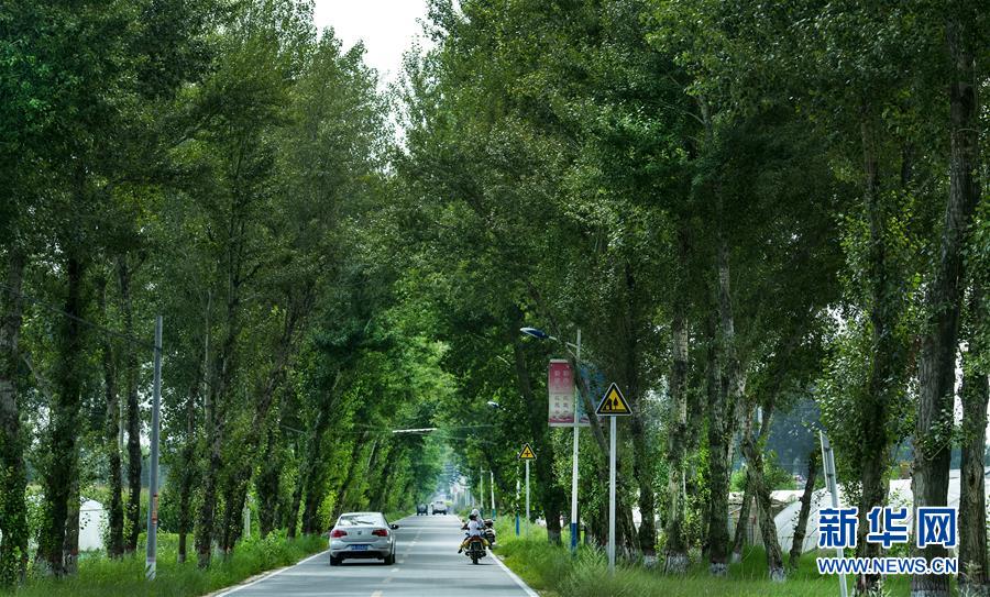 陜西榆林市靖邊縣東坑鎮東勝村道路兩側的大樹(7月31日攝)。新華社記者 陶明 攝