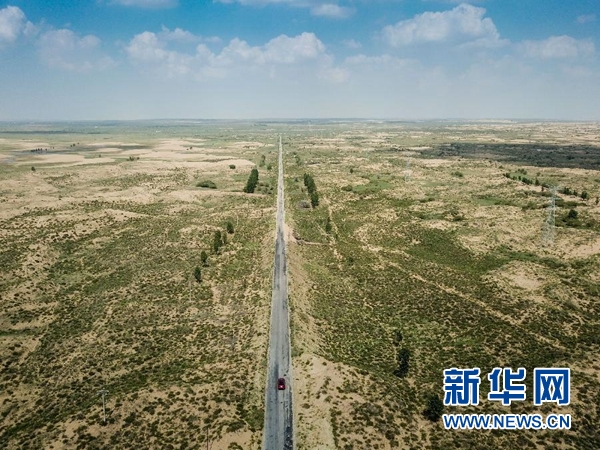 新華社呼和浩特8月8日電 題:庫布其首條穿沙公路 矗立在大漠的無形豐碑