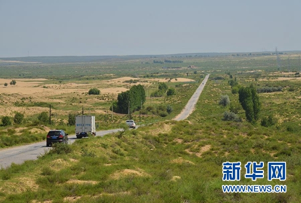 在內蒙古鄂爾多斯市杭錦旗,汽車行駛在錫烏公路上(7月26日攝)。新華社記者 鄒予 攝