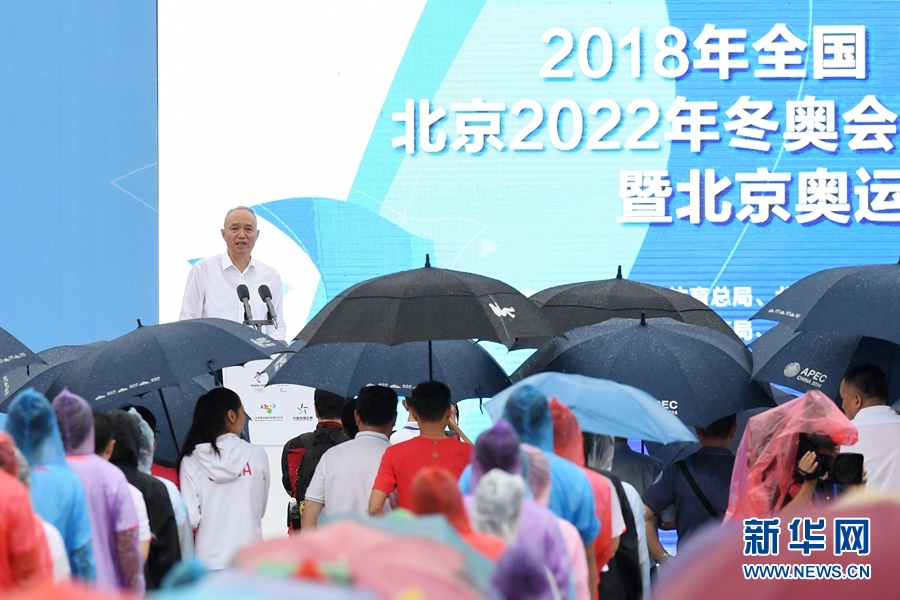 北京市委書記、北京冬奧組委主席蔡奇出席活動并宣布:“2018年全國‘全民健身日’主會場活動開始,2022年北京冬奧會和冬殘奧會吉祥物全球征集發布啟動?!?/p>
