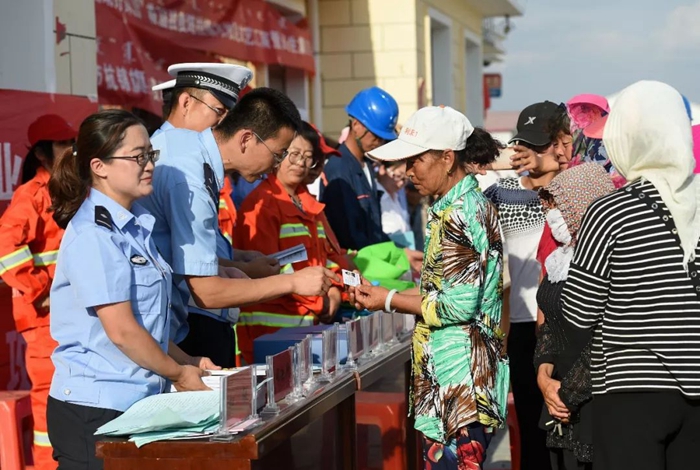 派出所民警在“民生集市”上向群眾發放新辦理的身份證。彭源 攝