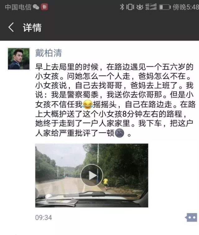 小女孩用沉默拒絕了他的幫助,他只好開著警車慢慢在孩子身后護送,暖心的8分鐘后,孩子終于進了家門。