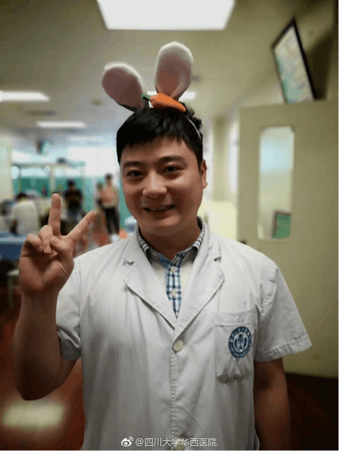 照片中的醫生為安徽醫科大學第二附屬醫院泌尿外科醫生陳磊,在連續工作12個多小時后,他累到虛脫,靠喝葡萄糖補充體力。