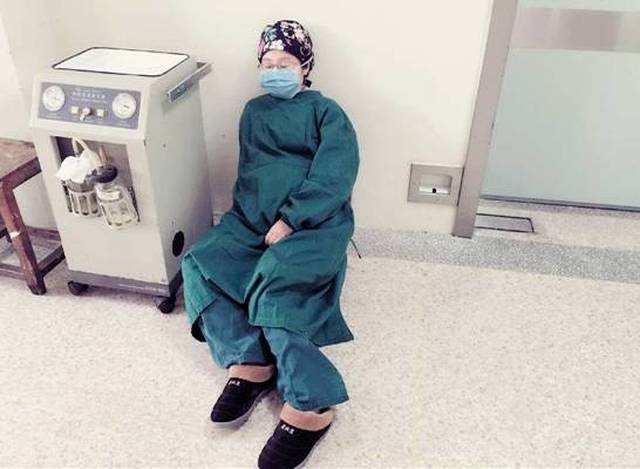大年初二,河南鹿邑縣人民醫院手術室醫生牛明麗在手術間隙,坐在地上睡著了。從前日下午3點至當日早晨7點,牛明麗和團隊成員幾乎連軸轉完成了10臺手術。
