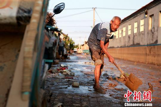 8月24日,洪水退去后濰坊壽光政府組織人員清理街道。濰坊市已啟動《重大自然災害衛生應急預案》最高級別響應。據統計,濰坊市已修復縣鄉路路基、路面79.14公里,局部損毀橋涵11座;搶通縣鄉公路22條、143公里?!×籂?攝