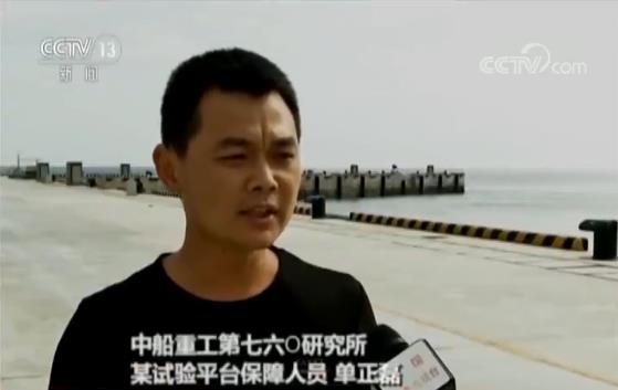 中船重工第七六O研究所某試驗平臺保障人員單正磊:“當時左右(晃動)都達到了15度,往左15度往右15度,(晃動)特別厲害,人在上面都站不穩了?!?/p>