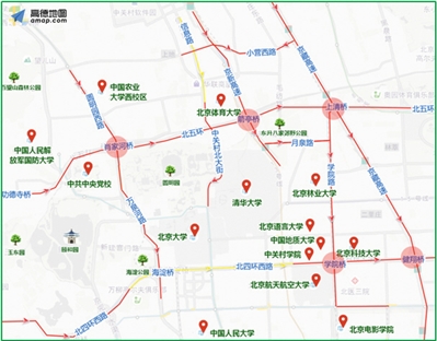 其中,廣渠門地區易擁堵的路段有崇文門內大街、珠市口東大街、幸福大街、東二環、通惠河北路、東三環南路、勁松路等路段。中關村地區易擁堵的路段有圓明園西路、萬泉河路、中關村北大街、學院路,易擁堵的橋區包括海淀橋、肖家河橋、箭亭橋、上清橋、學院橋、健翔橋等。