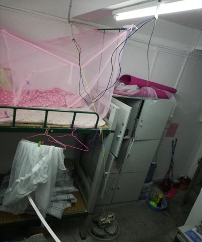 宿舍每4人一間,有獨立衛生間,但衛生間沒有窗戶和排氣扇,常有嚴重異味,還時常有小蟲子出沒。