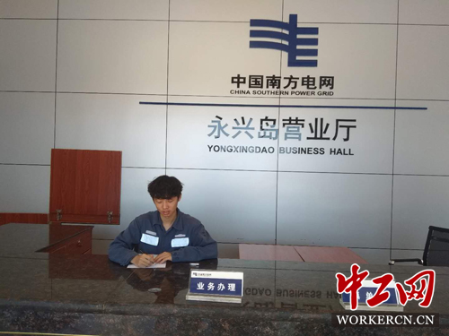 近日,中國能源化學地質工會相關領導和南方電網集團工會相關領導共同為南方電網海南三沙供電局授予了“工人先鋒號”的牌匾。牌匾掛在三沙供電局營業大廳門口,在紅綢彩帶映襯下,格外醒目。