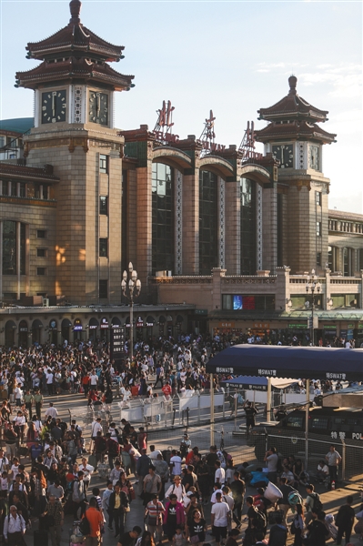 9月3日,來北京站乘車的旅客陸續進入候車廳。A12-A13版攝影/新京報記者 彭子洋
