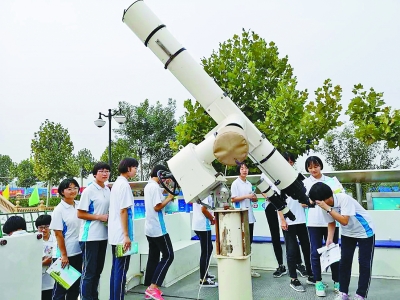活動現場,同學們興致勃勃、爭先恐后地觀看科教展品,了解聲光電磁力等方面的科學原理。這些展品形象直觀,可直接動手操作,讓青少年在動手操作中激發興趣,拓寬視野,增強科學意識。天文觀測車前,學生們排起長隊等待著觀看球幕影院四季星空的變化。夜幕降臨,同學們通過天文觀測車觀測到了木衛一、木衛二、木衛三……