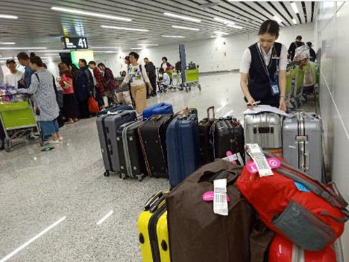 ▲臺風來臨前,地鐵乘務員正在為地鐵站做好防汛工作。