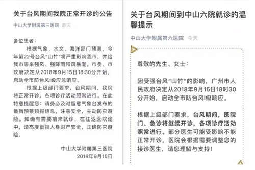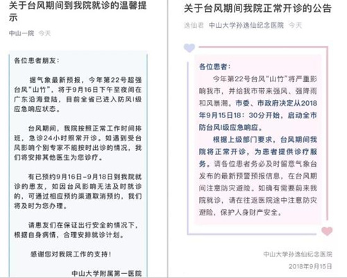 ▲各大醫院發布通知,臺風期間正常上班、照常開診。