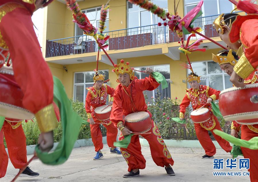 招子鼓藝人(中)為隆堯縣滏陽中學學生教授招子鼓表演技巧