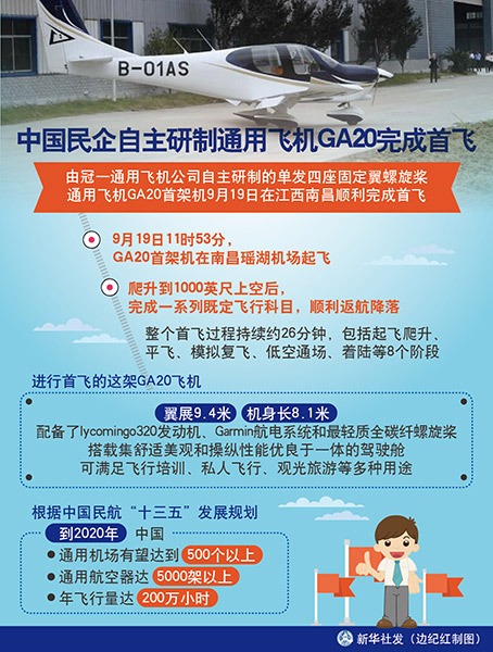 圖表:中國民企自主研制通用飛機GA20完成首飛 新華社發 邊紀紅 制圖