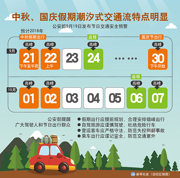 圖表:中秋、國慶假期潮汐式交通流特點明顯 新華社發 邊紀紅 制圖