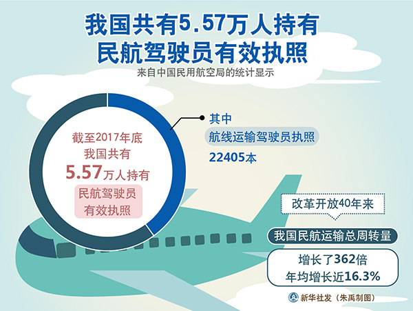 圖表:我國共有5.57萬人持有民航駕駛員有效執照 新華社發 朱禹 制圖