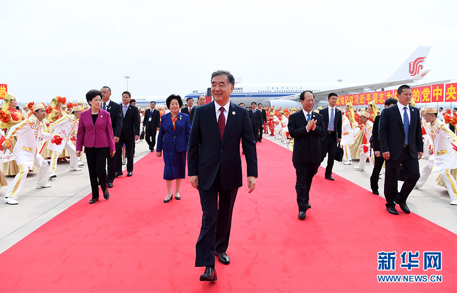 9月19日,以中共中央政治局常委、全國政協主席汪洋為團長的中央代表團飛抵銀川,出席寧夏回族自治區成立60周年慶?;顒?。中央代表團在機場受到寧夏各族群眾的熱烈歡迎。 新華社記者 張領 攝