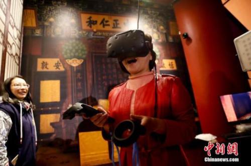 資料圖:"發現·養心殿——主題數字體驗展”在故宮端門數字館全新亮相。圖為運用VR技術參觀養心殿。中新社記者 杜洋 攝