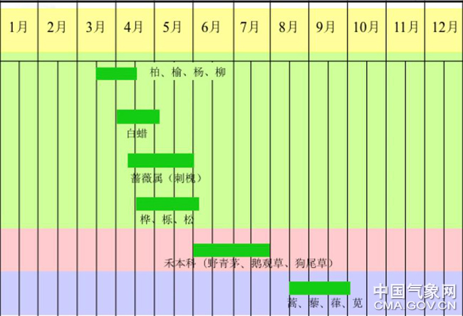 北京常見花粉分布狀況圖。來源:北京市氣象局