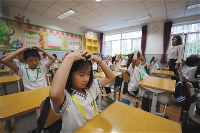 9月19日,朝陽區實驗小學(三里屯幸福校區北區),學生們正在做新眼保健操。 新京報記者 王飛 攝