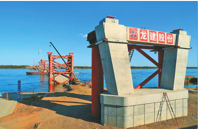 從大橋開始施工到現在,已歷經一年零9個月。目前,中方側8個橋墩的下部施工都已完成,現正準備進行鋼箱梁頂推施工;俄方側已經完成了3個橋墩的施工,有兩個橋墩正在江中作業,一個在澆筑實體墩身,一個在進行承臺施工。最新數據統計,中方境內完成投資3.5億元,俄方境內完成投資9.1億元,累計完成總投資12.6億元,占總投資的51%。