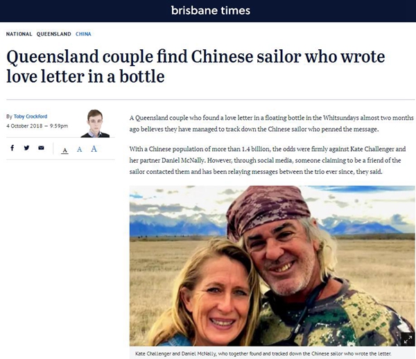 9月29日,新西蘭廣播電臺(RNZ)轉載了英國廣播公司的這篇報道,稱中國海員的這封情書已經在澳大利亞引起轟動。