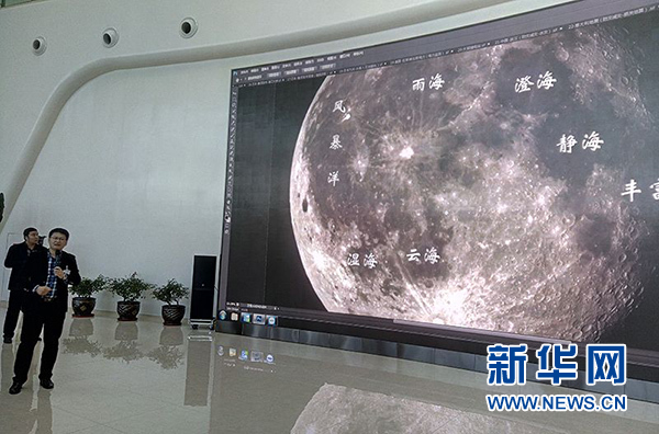 ↑↑相關負責人展示“吉林一號”拍回的月球表面圖像。