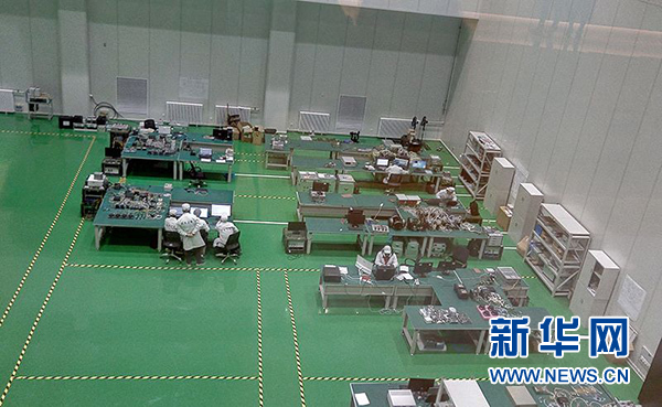 ↑↑工人們在生產車間內進行科研和生產。