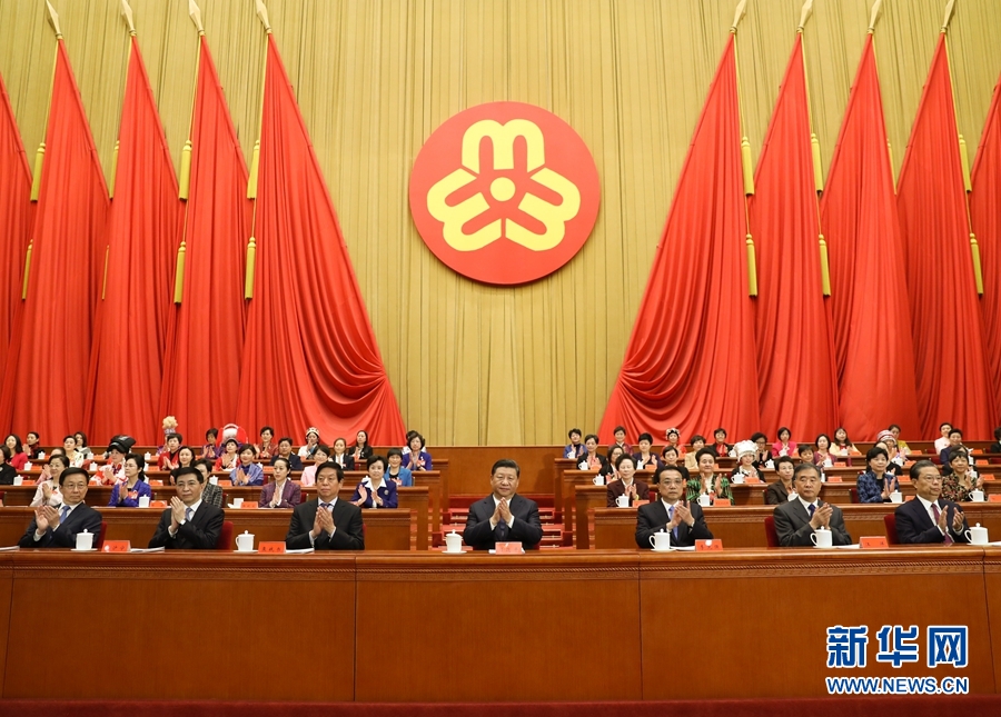 10月30日,中國婦女第十二次全國代表大會在北京人民大會堂開幕。習近平、李克強、栗戰書、汪洋、王滬寧、趙樂際、韓正等在主席臺就座,祝賀大會召開。 新華社記者 鞠鵬 攝