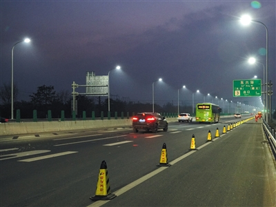 據建設方首發養護公司相關負責人介紹,本工程7月30日開始實施,11月8日晚實現全線亮燈。本次照明工程施工全長7.4公里,過程中新建路燈559盞。本項照明工程完工后,將為來往于市區至通州區的市民出行提供更加安全、舒適的道路通行條件。