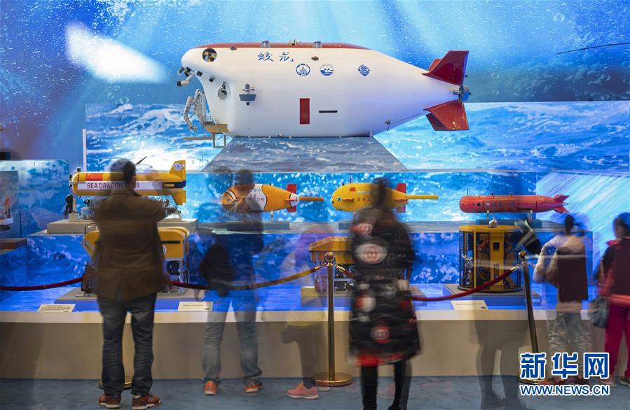 11月18日,觀眾在觀看“蛟龍”號載人潛水器等模型(慢門拍攝)?!皞ゴ蟮淖兏铩獞c祝改革開放40周年大型展覽”11月13日在國家博物館隆重開幕。自開幕以來,展覽吸引了眾多參觀者。新華社記者 才揚 攝