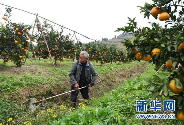 村民在位于重慶市大足區中敖鎮加福村的“最憶小橘”種植園內除草(11月20日攝)。 新華社記者王全超攝
