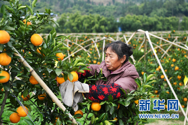 村民在位于重慶市大足區中敖鎮加福村的“最憶小橘”種植園內勞作(11月20日攝)。 新華社記者王全超攝
